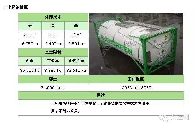 备注:这种集装箱是专为装运液体货物,如酒类、汽油、化学品而设计的